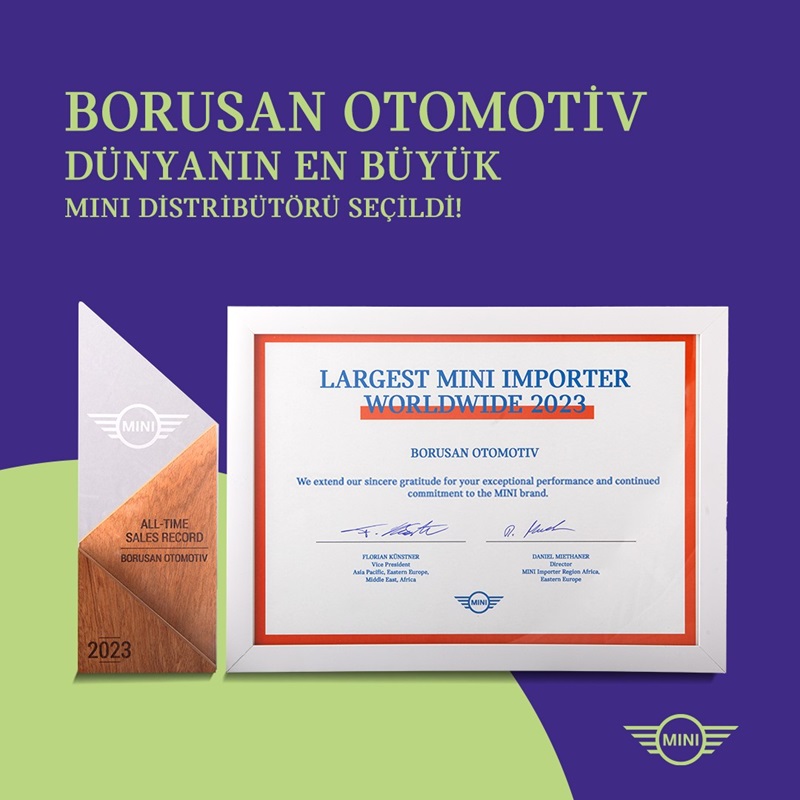 Borusan Otomotiv, 2023 yılında gösterdiği üstün performans ile “Dünyanın En Büyük MINI Distribütörü” unvanını alarak uluslararası alanda büyük bir başarı elde etti. Bu unvan, Borusan Otomotiv’in otomotiv sektöründeki güçlü konumunu ve yenilikçi yaklaşımını bir kez daha kanıtlıyor. Elektrikli araç satışlarındaki yüksek payı ile de dikkat çeken şirket, Türkiye otomotiv sektörünün geleceğine yön vermeye devam ediyor.