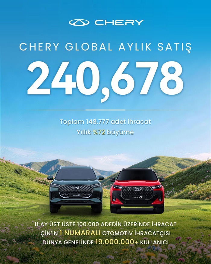 Çin’in otomotiv alanındaki ihracat lideri Chery, 2026 yılı mart ayında elde ettiği güçlü ihracat performansıyla küresel büyümesini hız kesmeden sürdürüyor. Yıllık bazda %72 artışla 148 binin üzerinde araç ihraç eden marka, Çinli üreticiler arasında aylık ihracat rekoruna imza attı. İlk çeyrekte ulaşılan 393 bin adedin üzerindeki ihracat hacmi ise Chery’nin küresel liderliğini pekiştirdi. Yerelleştirilmiş geliştirme yaklaşımı ve farklı pazarlara özel ürün optimizasyonları, markanın uluslararası rekabet gücünü artırıyor. “Bir yerde, bir yer için, O yerde ol” yaklaşımı ve CHERY FAMILY CARE hizmet anlayışıyla hareket eden Chery, yalnızca mobilite çözümleri sunmakla kalmayıp faaliyet gösterdiği pazarlarda kalıcı değer yaratmayı hedefliyor. Kullanıcı odaklı büyüme stratejisiyle marka, küresel otomotiv sahnesindeki güçlü konumunu daha da ileri taşımayı sürdürüyor.
