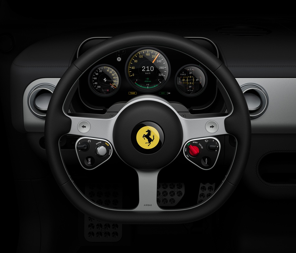 Ayrıca Formula 1 otomobillerini hatırlatan iki analog kontrol modülü, Ferrari test pilotlarıyla gerçekleştirilen 20’den fazla değerlendirme testinin ardından ideal mekanik ve akustik geri bildirim sunacak şekilde geliştirildi.