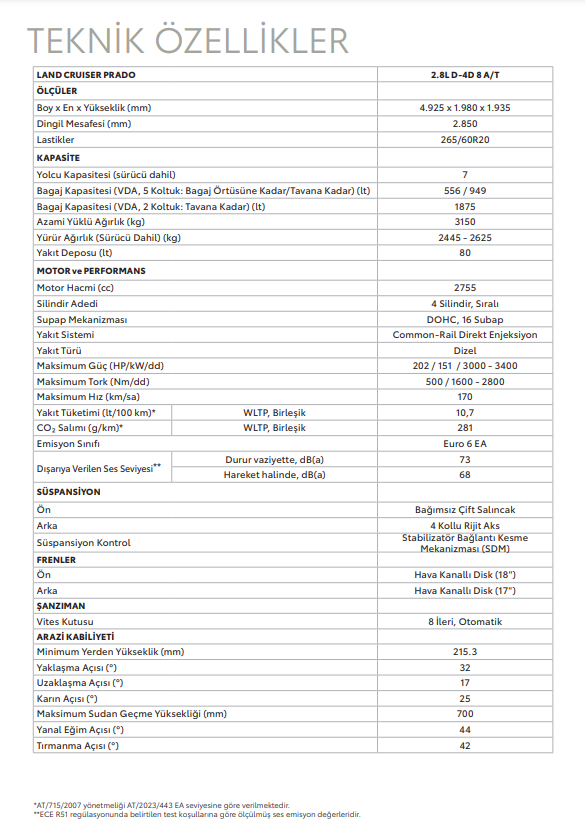 Toyota Land Cruiser Prado Teknik Ve Donanım Özellikleri