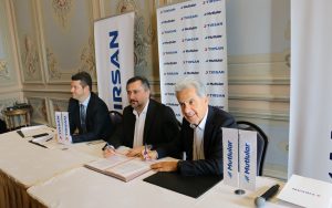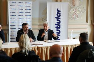 Mutlular Transport’un yeni intermodal tenteli perdeli araçlarının teslimatı ve yeni yatırımının imza töreni Çırağan Palas Kempiski Otelinde Tırsan Treyler Yönetim Kurulu Başkanı Çetin Nuhoğlu, Mutlular Transport Yönetim Kurulu Üyesi Mutluhan Akan ve Tırsan Treyler Satış İcra Kurulu Başkanı Ertuğrul Erkoç’un katılımı ile gerçekleştirildi.