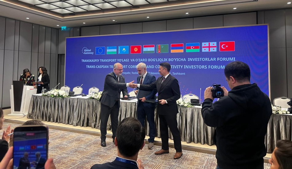 Hazar’da modern ve çok paydaşlı bir Ro-Ro hizmeti kurulması için önemli bir adım atıldı. 26–27 Kasım tarihlerinde Taşkent’te düzenlenen Avrupa Birliği Küresel Geçit (Global Gateway) – Orta Asya Yatırımcılar Forumu kapsamında, Türkiye’den UND (Uluslararası Nakliyeciler Derneği) ve Albayrak Şirketler Grubu ile Kazakistan’dan National Company Kazakhstan Temir Zholy (KTZ) arasında Hazar Denizi’nde modern, sürdürülebilir ve çok paydaşlı bir Ro-Ro hizmeti geliştirilmesine yönelik stratejik bir Mutabakat Zaptı (MoU) imzalandı.