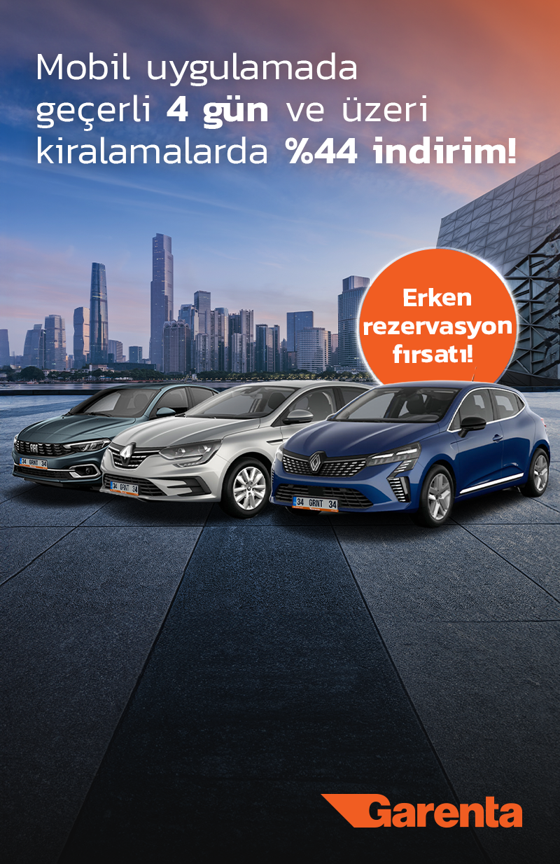 Modern ulaşım ihtiyaçlarına erişilebilir çözümler sunmaya odaklanan Garenta’nın hem zamandan hem bütçeden tasarruf ettiren kampanyası 28 Şubat 2026’ya kadar mobil uygulama üzerinden yapılacak rezervasyonlarda geçerli. Dijitalin sunduğu pratikliği seyahat özgürlüğüyle buluşturan kampanya hem bireysel hem de kurumsal müşteriler için tasarlandı. 25 Mart – 30 Eylül 2026 tarihleri arasındaki kiralamalarda geçerli olan kampanya kapsamında, 1-22 gün arasındaki tüm kiralamalar %44 indirim avantajıyla gerçekleştirilebiliyor.